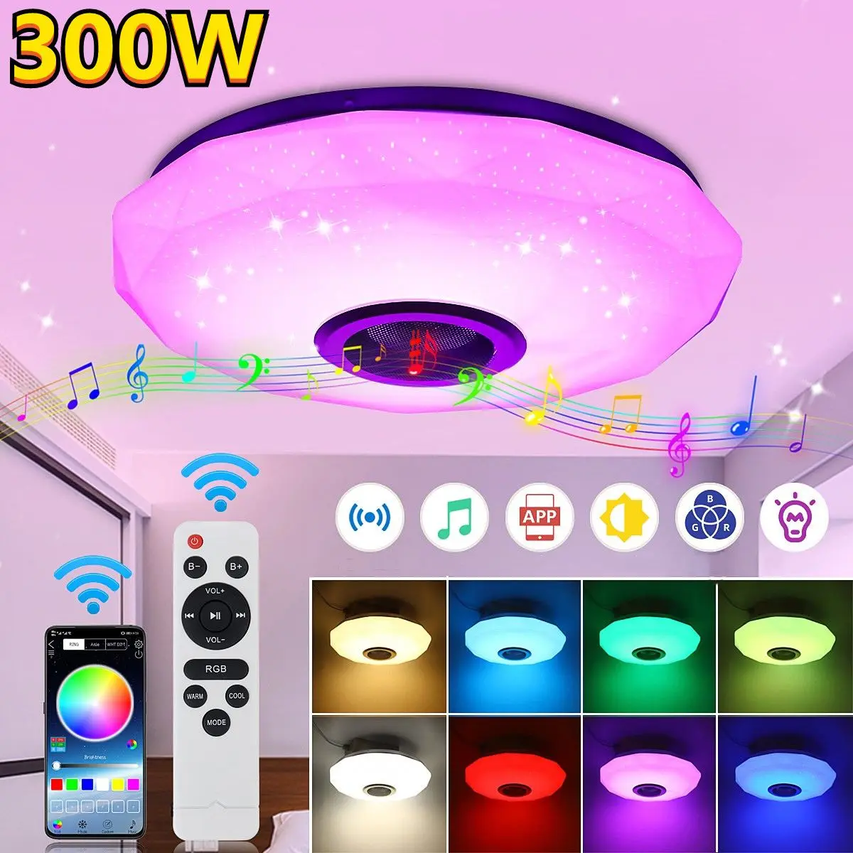 300W RGB Dimmable Music Ceiling lamp Remote&APP control Ceiling Lights AC180-265V for Home bluetooth speaker lighting Fixture