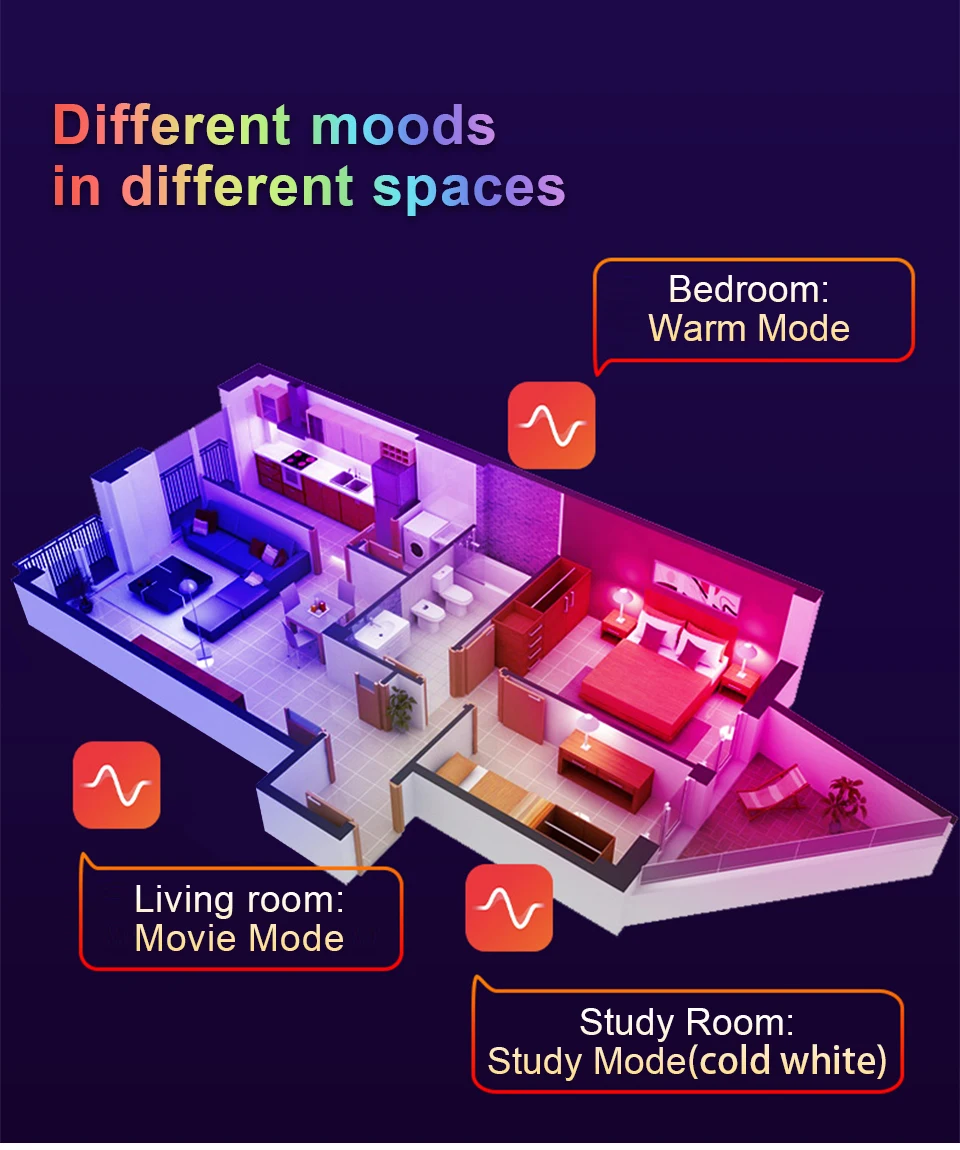 ●2700K-6500K + 16 million colors >>> Meet your daily lighting and entertainment lighting needs