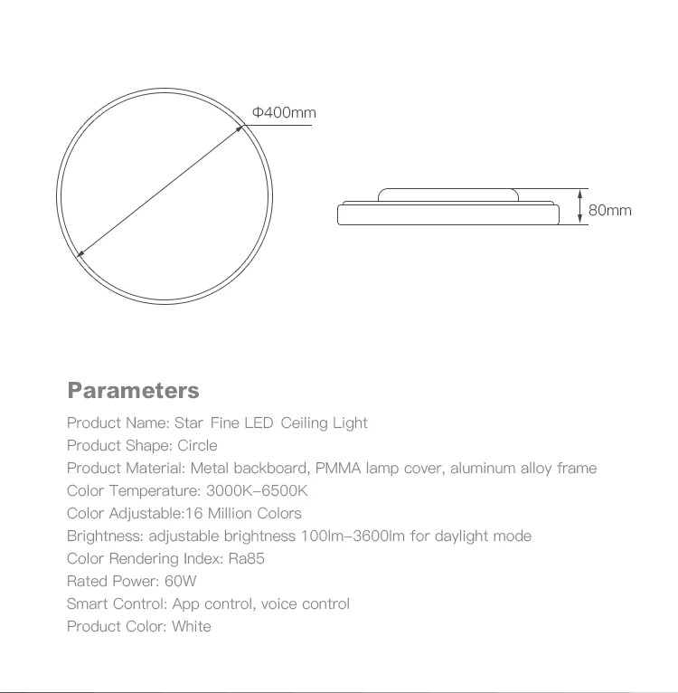Package contents: 1 x Celing Light, (no remote control, only via APP control or voice)