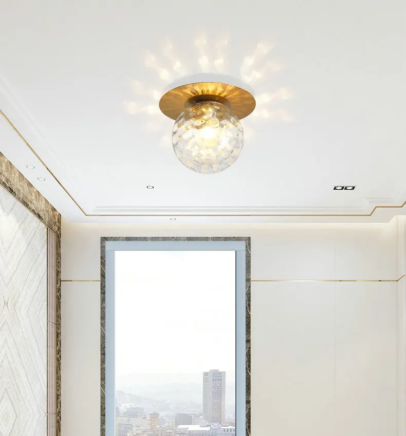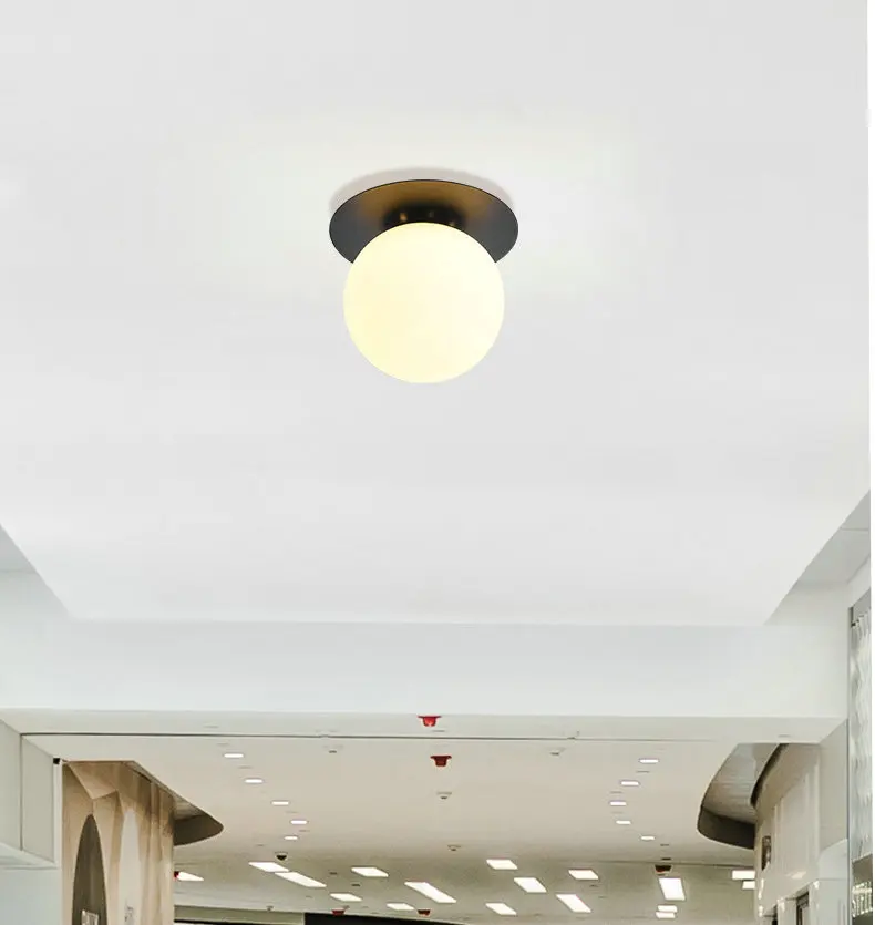 Modern Luxury Round Glass Ceiling Lamp Black Gold Metal LED E27 Ceiling Lights for Hallway Corridor Entrance Aisle Illuminaire