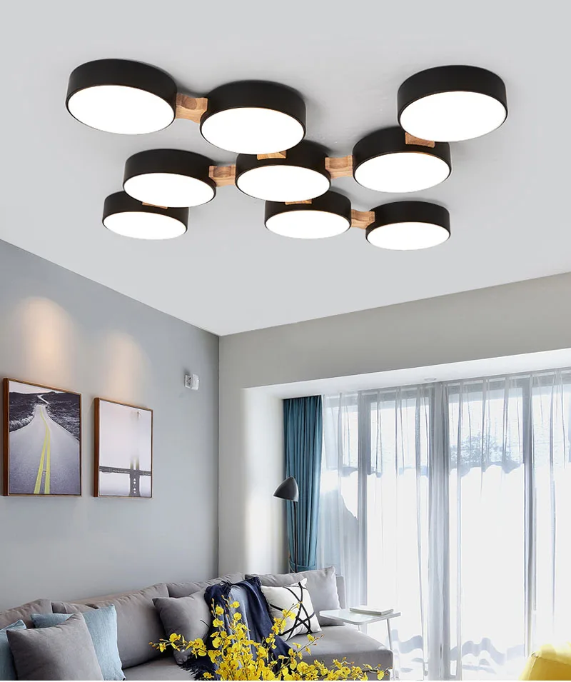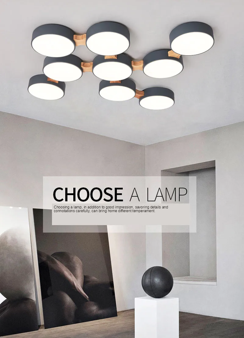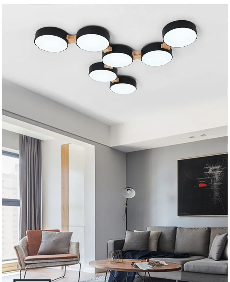 Promotion Nordic simple home living room molecular creative LED 220V ceiling lamp solid wooden bedroom dining room lamp restaurant cafe