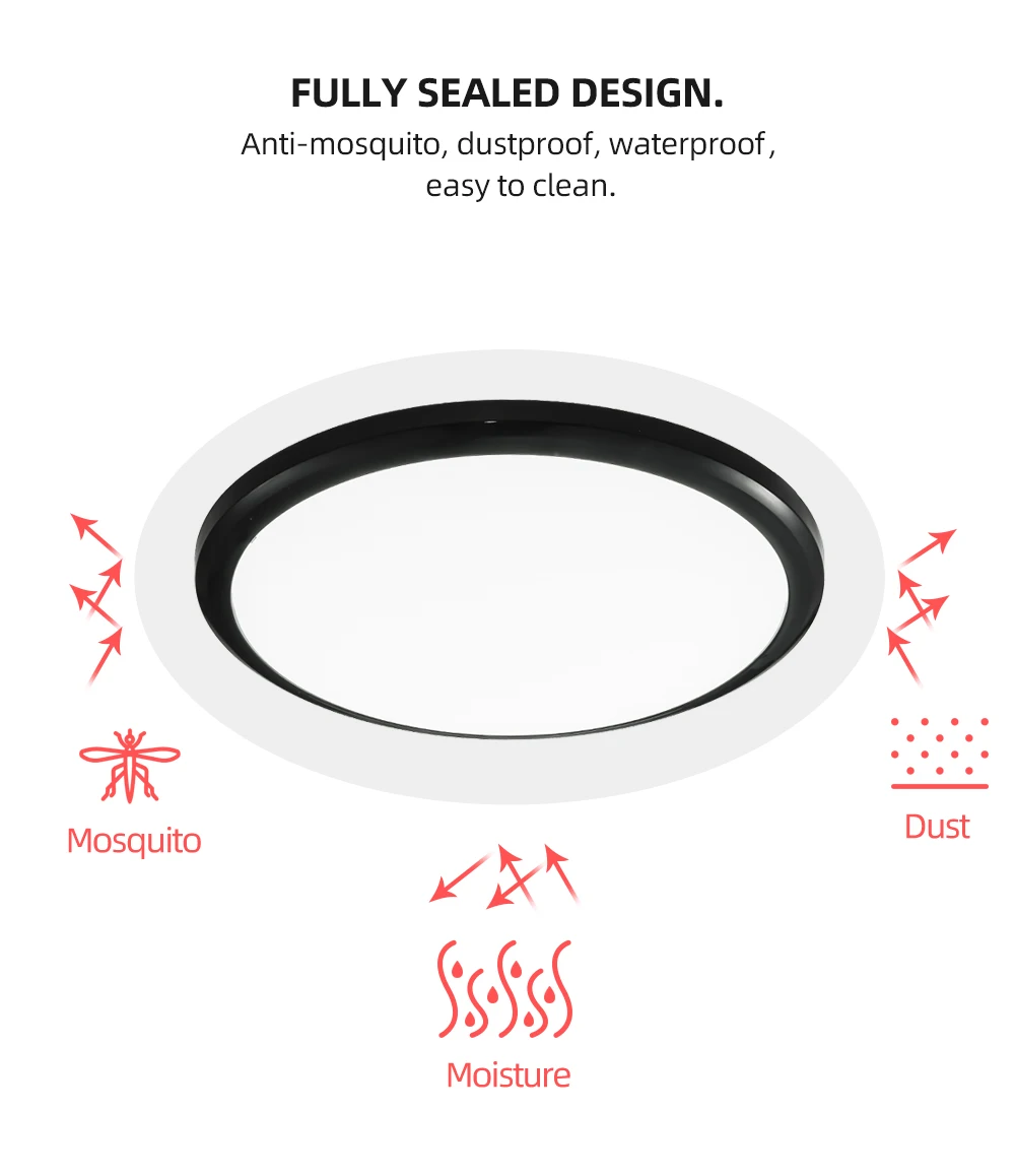 Discounts VIPMOON Modern LED Ceiling Light Waterproof Bathroom Round Lamp Washroom Toilet 18w 24w 36W 6500k Home Interior Black Bright